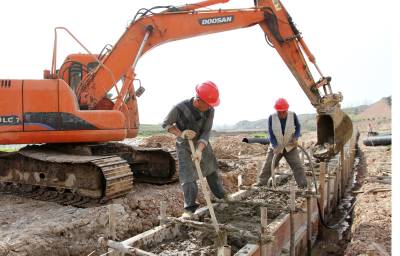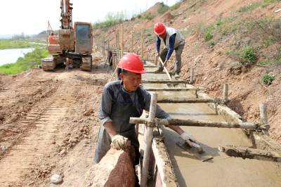 2019年3月31日,施工人员在房县军店镇污水处理厂用混凝土填埋排污管道,该污水厂建成后,日处理污水3000吨。房县综合治理黑臭水体,补齐乡村治污“短板”,保护河流水环境。目前,完成建设城区生活污水处理厂2座,19个乡镇污水处理设施新建提标项目全部建成,新建农村集中式污水处理设施192处,乡镇污水治理实现全覆盖,整治后的生活污水达到国家一级A类排放标准,实现乡村河流水质提级达标。