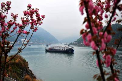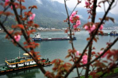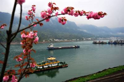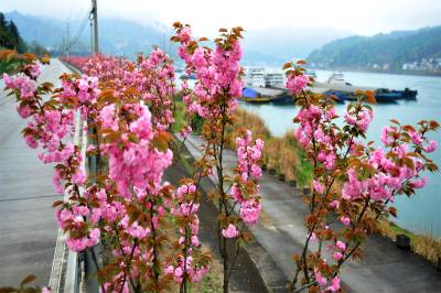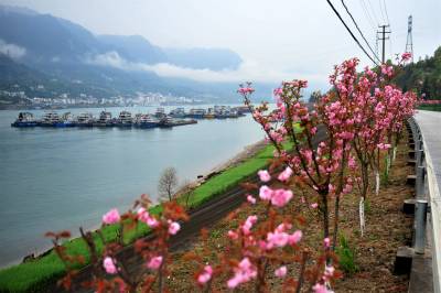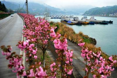 2017年起,宜昌市夷陵区在长江西陵峡沿岸的三峡专用公路及武大线348国道道路两侧栽植晚樱林,致力打造“十里樱花长廊”景观。如今,“樱花长廊”花漾壮美峡江山水,沿岸处处彰显出生态文明之美。