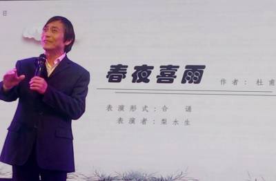 清明时节雨纷纷,诵春诗念故伟人。4月2日的湖北省武汉市又是春风又是雨,而在当日下午的该市江汉区文化馆3楼小剧场,正在举行我们的清明节日---以清风诵春景明月思故人为主题的风雅诵社迎春诗会。来自本省市区和江苏省的近百余名诗歌朗诵演唱者 ,该馆全体共产党员和申请入党积极分子等同台表演了独诵、吟诵、领诵、合诵了《 好风胧月清明夜》(咏春)《 入骨相思知不知》(思亲)《 留取丹心照汗青》(思贤)《 梨花风起正凊明》(继承与开创)四个篇章的12首古今名诗词,他们诵春诗念故伟人,混声合唱《 我和我的祖国》合诵《 可爱的中国》迈入新时代,共同喜迎建国70周年。