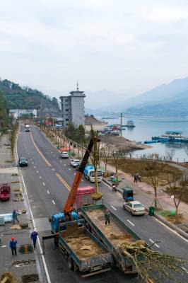 时下,在长江三峡库区湖北省宜昌市秭归县沿江两岸,造林绿化正掀起高潮,城镇乡村一派繁忙景象。两年来,该县采用“宜乔则乔、宜灌则灌、宜草则草”的方式,在堤岸、道路、码头、通道等地植绿906.1亩,栽植红叶石楠、银杏、三角枫、无患子等多彩季相苗木52319株,播植麦冬、狗芽草等各类草籽1854公斤。