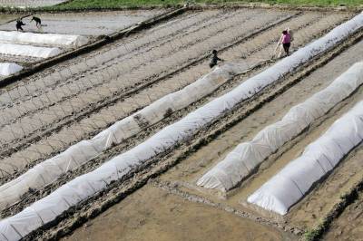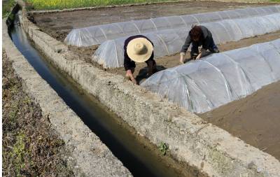 2019年4月5日,小渠道的汩汩清水润泽湖北十堰市房县军店镇月明村千亩农田,图为农民在育种水稻。眼下,春耕生产灌溉又遇农田用水高峰,但“十年九旱”的房县,今年12.5万亩农田有望全部栽上秧苗。原来,该县将渗水严重的土渠修建成“U型”“T型”混凝土预制块衬砌的节水渠道,将“毛细血管”小水渠延伸到田间地头,破解农田灌溉“最后一公里”难题。近5年,全县完成修建节水渠道659公里,“解渴”农田灌溉面积12.5万亩,项目区年新增粮食1120吨,农民人平纯收入达到1万元。
