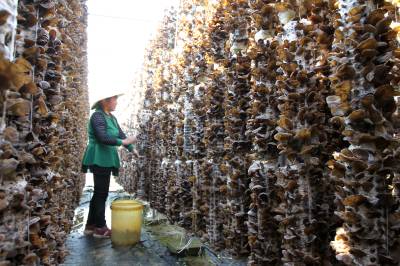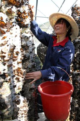 2019年4月6日,房县土城镇通省馆村农民在食用菌扶贫产业基地采收、管理黑木耳,该产业带动了全村545名农民致富。房县实施“公司 十 专业合作社 十 技术入股 十 流转土地 十 务工”的扶贫模式,规模化发展黑木耳、香菇产业,促进农民致富。目前,该县耳菇巳成为农民增收的支柱产业,耳菇产品销往日本、德国、比利时等18个国家,年均实现收入2.5亿元,创汇9000万美元,人平年增收1.5万元,6万多农民摘悼贫困“帽子”。