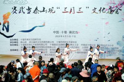 当日是农历三月初三,众多市民和游客来到十堰市赛武当泰山观“三月三”文化庙会。活动现场,唢呐齐奏、锣鼓喧天,民俗文化展演、武术太极表演等精彩的表演让人流连忘返,丰富多彩的民俗文化活动和民间手工艺品集中亮相,琳琅满目的商品、精彩纷呈的表演、鲜香诱人的美食,无不吸引着游人驻足观赏和品尝。广大市民游客沉浸在美好春光里,登山踏青、赏花游园、祈福逛庙会、听鼓乐看大戏,赏民俗品美食……尽享这场色香味形俱佳的民俗文化盛宴。视界网薛乐生摄