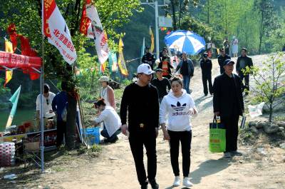 2019年4月7日,游人纷纷来到赛武当泰山观景区登高踏青逛庙会,好不热闹。