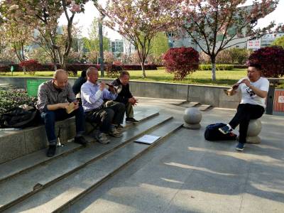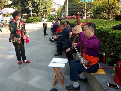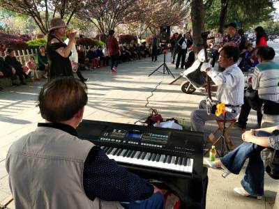 据在广场上跳健身舞的一位大爷介绍,除了下雨下雪,每天夕阳西下时,都会有上百名皓首老人,他们或三五成群,或十几个人一起,带着响器、乐器、音响、笔墨纸张等,在人民广场、文化广场、人民公园和源园公园里,有的敲击响器,有的弹奏乐器,有的吹喇叭,有的拉二胡,有的纵情歌唱,有的用毛笔书法,有的练武当功夫,有的唱京剧,还有的画国画……他们用各自不同的方式,传承传统文化,奉献余热,天天如此,乐此不疲。不仅快乐了自己,也愉悦了别人。(视界网 张云朝 摄)