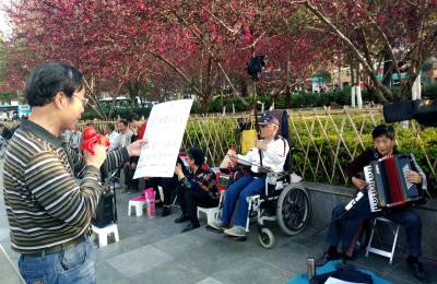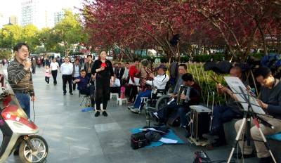 “我和我的祖国,一刻也不能分割……”4月7日,美丽的夕阳下,一场由须发苍苍的老人自发组织起来的义务演唱会,正在十堰市人民广场上演。