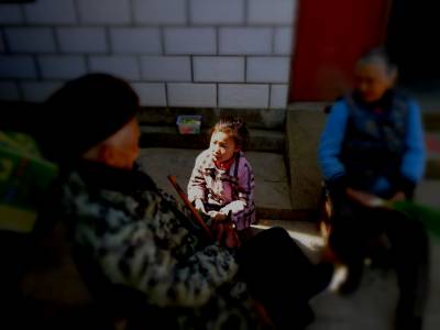 同当地众多留守学童一样,在学校每两周一放的4天假期里,她便成为没有同龄小伙伴的形单影只。一个人在院落跳绳、一个人坐在门前看故事书、一个在房前屋后把玩花草……吴轩乐努力制造着一个人的快乐,而“讲故事”则是她与祖辈间分享的快乐、心灵沟通的最好语言。