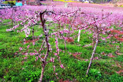 4月9日,竹山县秦古镇大溪河村,千亩桃花映红乡村,吸引了众多游人前来观赏。(视界网 张云朝 陈光复摄)