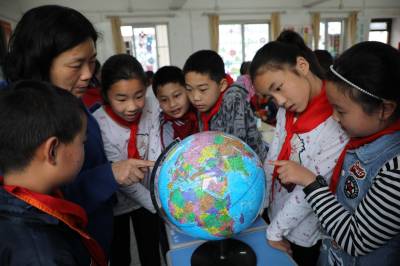 今年4月22日是第50个世界地球日,为增强学生的环保意识,全面了解地球知识,在世界地球日来临之际,湖北省十堰市郧阳区鲍峡镇中心小学组织学生积极开展“立即行动起来,呵护我们共同的家园”的科普教育活动,学校科学课教研组通过学生办手抄报,出黑板报,办科普讲座,组织学生参与清除垃圾等环保活动等多种形式,引导学生认识世界地球日的意义和由来,并积极行动起来,从现在做起,从自己做起,从身边小事做起,把珍爱美丽家园的神圣职责时刻装在心里,用实际行动守护自然资源,为创造一个绿色清新洁净自然的家园不懈努力。图为4月9日上午课外时间,五年级三班科学兴趣小组的同学们在地球仪前听朱老师讲地球知识。赵悦同学感叹到,啊,地球母亲真是太不堪重负实在太累了,我们没有理由不呵护它呀!