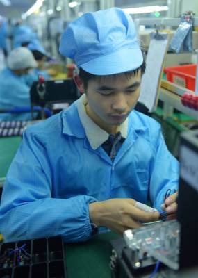 新坤电子是一家生产电子变压器的电子公司,2018年10月以前该公司主要生产低端电子产品,市场竞争力弱、产品附加值低、工人劳动强度较大,年产值8000万元。2018年10月,该公司报废淘汰掉原有的设备设施,实行产品转型升级,专业生产移动电源、无线充电器、PACK、智能扫地机等产品。2019年初该公司新生产线正式运行,吸纳300名群众就业、120多名学生实习,公司2019年第一季度产值与2018年同期相比翻一番。