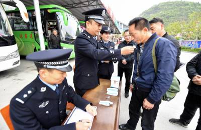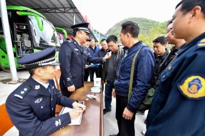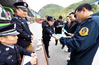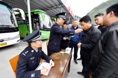 2019年4月10日,保康民警正在该县旅游客运站对驾驶员进行唾液毒品检测。