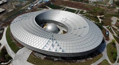 襄阳市科技馆新馆项目是襄阳市东津新区十大公共工程之一,位于东津新区,毗邻218省道,总建筑面积 约33800㎡。襄阳科技馆新馆作为新区的标志性建筑,力求新颖、先锋,体现科技感。襄阳科技馆新馆的设计以星空为主题,以天体运行的椭圆形轨道为原型,采用“探索之眼”的创意,构造出177米长、119米宽的椭圆形体造型,集中体现了“启迪智慧、创意探索”的建馆理念。从空中俯瞰,仿佛一只望向天空、充满求知渴望的眼睛,表达出人们对先进科技的不断追求、对神秘太空的不断探索。