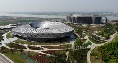 4月11日拍摄的襄阳市科技馆。由中建三局二公司基础设施工程公司承建的襄阳市科技馆新馆项目日前顺利通过竣工验收,建筑面貌整体显现。