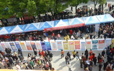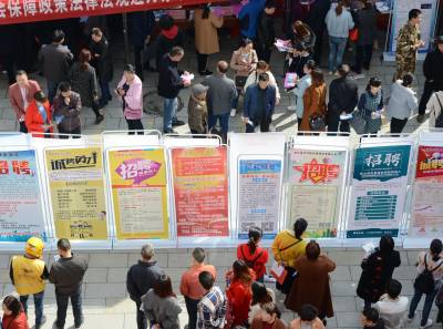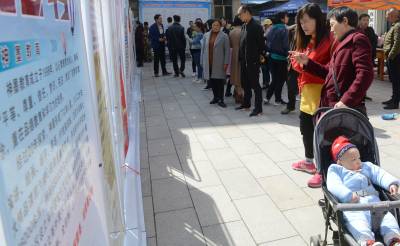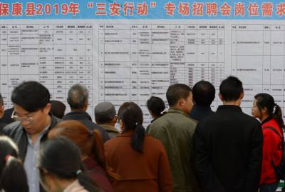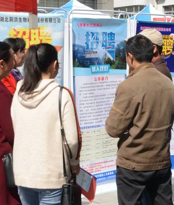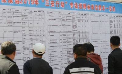 2019年4月11日,求职者在保康县“三安”行动招聘会现场寻找就业岗位。 当日,保康县委组织部、人社局、退役军人事务局联合举办“三安”行动招聘会,吸引退役军人、就业困难党员和城乡劳动者4000余人进场咨询、求职。现场共有省内42家企业进场,提供就业岗位3500个。 据悉,开展“三安”(组织安家、岗位安业、思想安心)行动招聘会,旨在为退役军人、在外流动党员、破产改制企业党员、生活困难党员和城乡劳动者提供就业岗位。