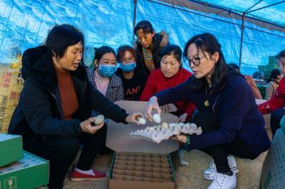 电商助农增收 4月11日,在宜都市枝城镇全心畈村,宜都旗峰电子商务有限公司技术人员在教村民们包装鸡蛋。今年3月,“宜都旗峰”与“广水旗峰”签订合作协议后,仅土鸡蛋一项就收到了3万箱计90万个鸡蛋的定单。当天,20多名村民包装鸡蛋2000箱计6万个鸡蛋,村民们不仅销售了自己的鸡蛋,而且还学到包装鸡蛋知识,并挣到了劳务费。据公司负责人介绍,当天还发出500件黄桃罐头。