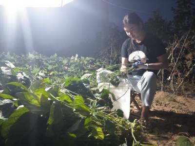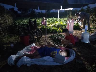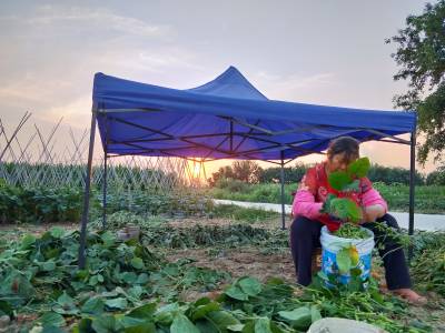 > 暑夜菜农忙着采摘毛豆