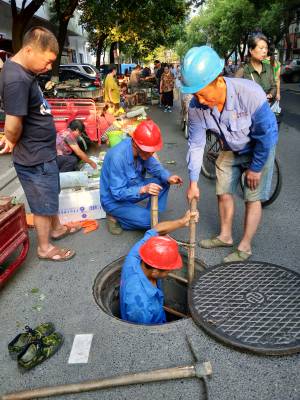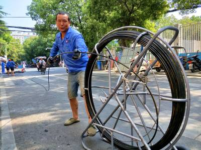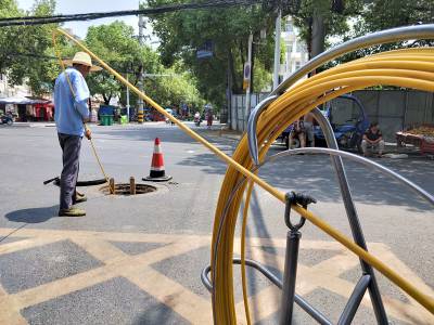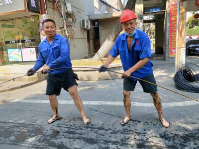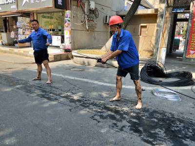 2019年8月14日,施工人员冒着高温酷暑在云梦城区施工,确保 “雪亮工程”雪亮照人,保社会平安。连日来,高温炙热,施工人员下地洞,拉网线,建设“雪亮工程”牢固防护网。