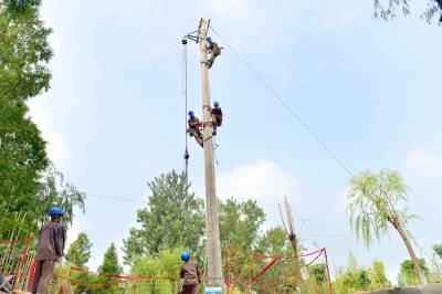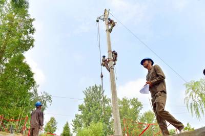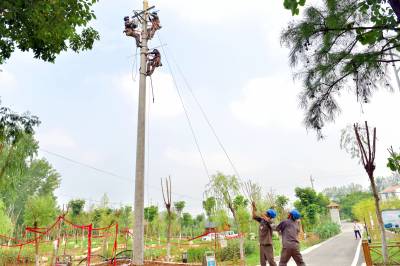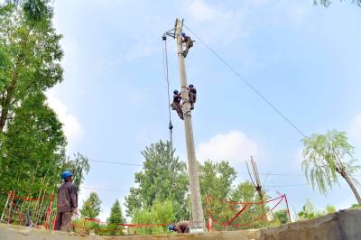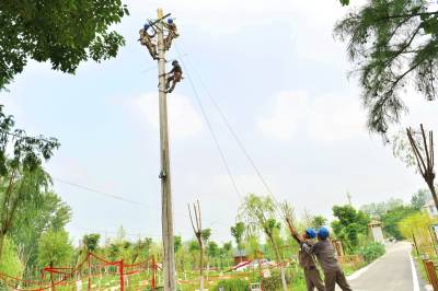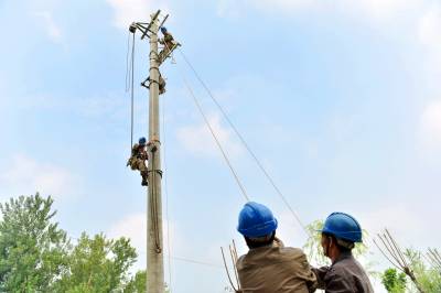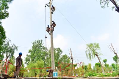 湖北沙洋:塔上“穿针引线” 消除线路隐患