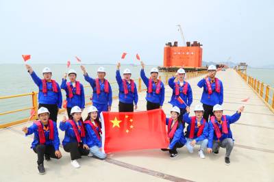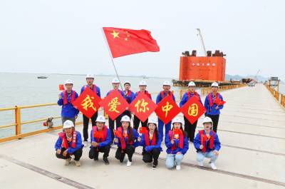本报珠海讯(通讯员孟庆虎 周 悦) 8月20日,中铁大桥局珠机城际金海大桥工地部分职工在栈桥桥面,精神抖擞,手持国旗,高唱红歌“我和我的祖国”、向国旗敬礼、和国旗合影,从而把项目部开展庆祝中华人民共和国成立70周年的活动推向高潮。