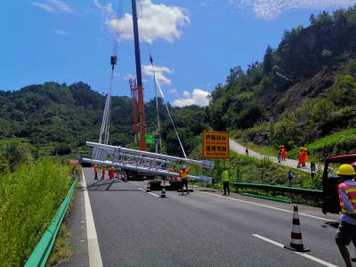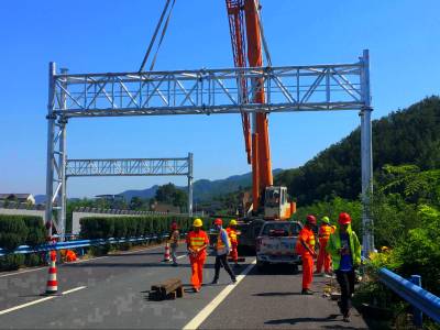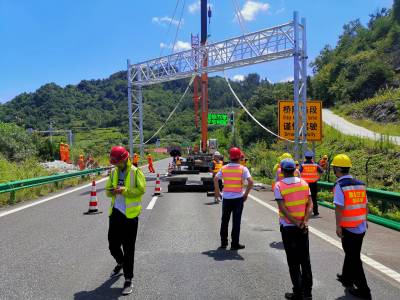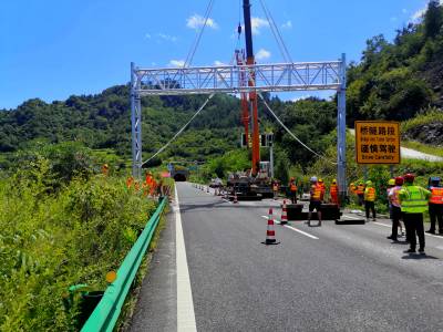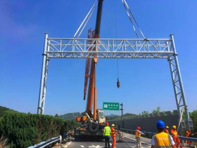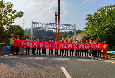 日前,随着福银高速十漫段K1389+520上行门架完成精准对位,点焊加固最后一道工序,福银高速公路十堰区域26套ETC门架全部吊装完成。自撤站工程展开以来,汉十管理处撤站指挥部进一步加强施工组织监管,积极为施工组织和施工安全创造良好保障。在平均温度40℃、路面温度达50℃以上的高温天气下,经施工单位和多方力量的共同努力下,福银高速十堰区域26个门架基坑全部开挖,浇筑,吊装,占比100%。共建成门架26个,其中非省界门架18个,省界门架8个,其中白十向K23+350处门架宽度达到21.8米。