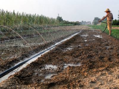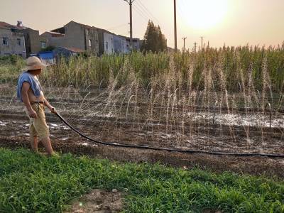 2019年8月19日,云梦县隔蒲潭镇陈刘村村民在菜地抗旱浇水保菜。连日来,云梦县持续最高温无雨,最高温度度达到39摄氏度,进入“汗蒸模式”,大地喊渴。云梦县是湖北省蔬菜生产大县,为确保蔬菜生产,广大菜农千方百计战高温抗旱浇水保苗保菜,确保蔬菜生产市场供应。