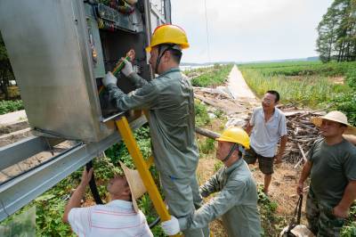 8月21日,武汉市汉南区供电公司员工来到东荆街沟北大队,更换大队所属红旗渠泵站的电缆,并对泵房内用电设备进行了“体检”。该泵站抗旱抽水机组投入了运行,为5千余亩干涸的农田送去了“及时雨”。随后,供电师傅还帮农户们检查农田小水泵的线路,确保农田抗旱用电无忧。