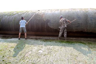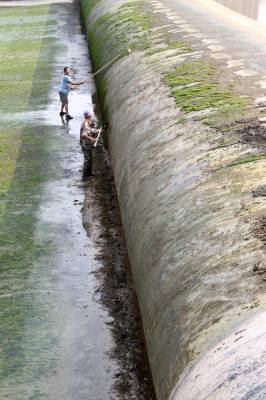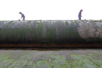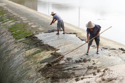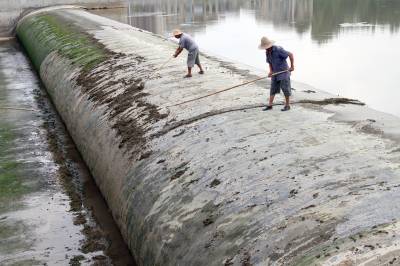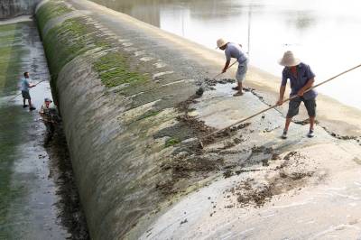 2019年8月24日,洪水消落,房县民间河长在马栏河城区泉水湾段清理橡胶坝上积淀的泥土。房县39条县级管理的重点河流由120名编制外民间河长担任护河工作,这批民间河长经过业务知识培训,分河流和分段巡河、护河、清理河面漂浮物,捡拾、清运沿河边垃吸,县河长办、住建部门对所管理的民间河长进行目标任务考核,引进奖惩机制,要让条条河流变成水清、岸绿、环境美的风景河。目前,民间河长完成清除水域漂浮物410吨,岸坡废弃物560多立方,河流水质提级达标,游客观河赏景成为一道靓丽的风景线。