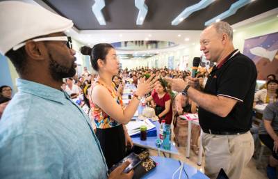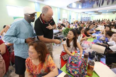 8月25日,清华大学外文系范文芳教授、清华大学出版社彭远同等来自各省市的优秀教育工作者相聚襄阳市长春外国语学校,参加襄阳市中小学英语教学和信息技术融合研讨会,调研该校就英语教学和信息技术共同探讨英语教育的改革。我市长春外国语学校在全市率先引进在线外教双师课堂,即由一个母语为英语,并且持有国际教师资格证外籍老师通过多媒体在线实时授课,本地中教老师进行现场辅助教学,结合学校本身的英语教材实现“互联网+外教+英语课标课程”的创新英语教学模式。图为研讨会分会场展开的交流。