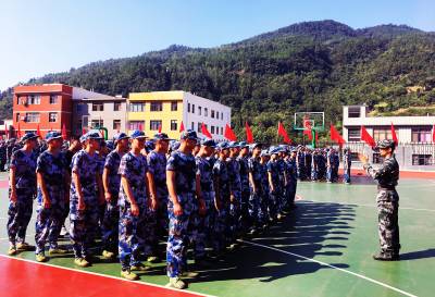 28日,巴东县溪丘湾高中高一新生正在进行军姿定型训练。 为了让学生在军政训练中强健体魄,养成良好习惯,巴东县溪丘湾高中聘请10多名教官,为600余名新生普及军事知识,提升爱国情怀,在军姿定型、内务整洁上强化训练,在5天时间内,积极营造新生精气神和团队意识,以饱满的激情迎接高中生活学习挑战,努力做一名意志坚定、德才兼备的栋梁之才。(视界网 梁勇 吴金茂 摄)