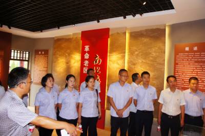 在南化塘革命烈士纪念碑前,全体党员向革命先烈敬献了花圈,向革命烈士墓三鞠躬默哀,以表达对长眠于此的烈士们的深切哀思,并重温入党誓词。铮铮誓言,唤醒党员的身份意识,切实发挥好先锋模范作用。随后,全体党员来到南化塘革命历史展览馆,参观革命老区南化塘、中原突围南化塘、继往开来南化塘三个分馆的文字图解以及革命先辈照片、亲笔战略书信、简易的武器装备、朴素的生活用品等陈列展品,聆听馆长讲述了南化塘英雄人物的感人事迹,了解南化塘的革命斗争历史、突出贡献以及将帅英雄的战斗经历。追忆先烈遗迹,追思英雄情怀,大家为老一辈革命家艰苦奋斗、勇于献身的精神和爱国热情所深深震撼。