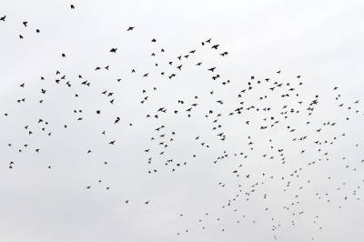 2019年10月26日,房县县城东关街头,成群的山雀一会在空中盘旋,一会停留在供电线路上歇息。随着房县城市河流水环境的大大改善,绿地面积成倍增加,昔日远去的麻雀、八哥、喜雀等山雀,今朝又重归山城故里,安家落户。如今,成千上万只山雀在该县城区四通八达的大街小巷“生活”,早晨它们一起从树梢上飞走寻食,晚上太阳落山的时候,山雀们“集会”到树上叽叽喳喳叫个不停,成了城市的一道靓丽风景。