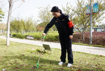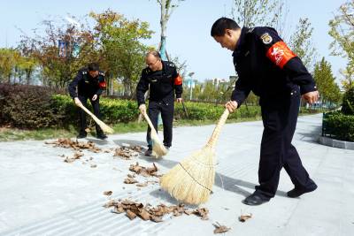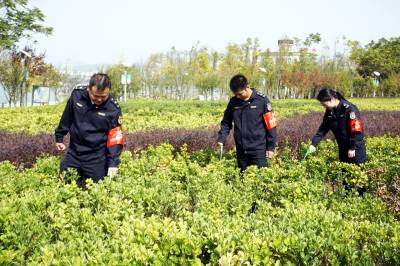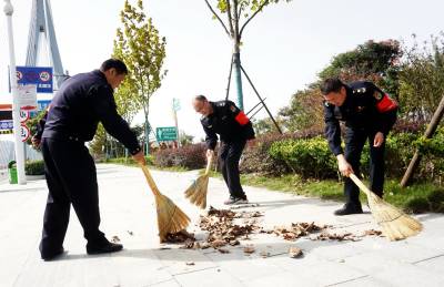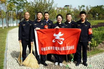 2019年10月28日,十堰市郧阳区城市管理执法局的志愿者来到江边一桥桥头公园清扫落叶,并在绿地里捡烟头,以实际行动带头保护南水北调中线工程生态环境,支持创建文明卫生城市。