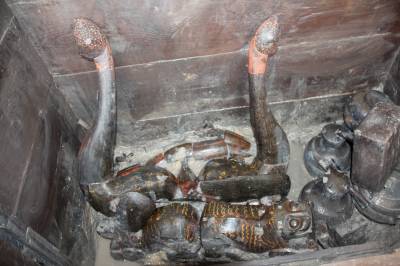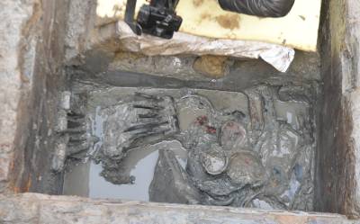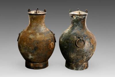 目前,工地出土遗物400余件(套),质地有陶器、青铜礼器组合、玉器、漆木器、丝麻织品、皮革等。