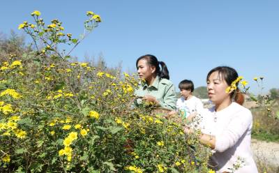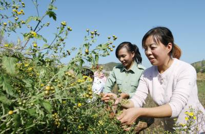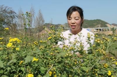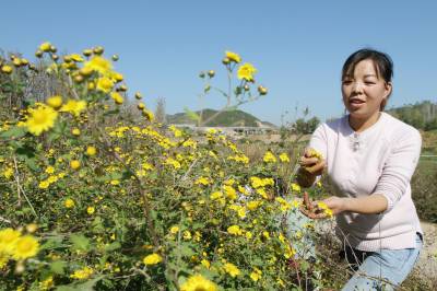 2019年10月30日,房县红塔镇七里河村农家女在采摘野生菊花,然后通过对野菊花烘焙、晾晒、遴选、装袋,销往越南等东南亚市场。房县是神农尝百草之地,也是全国最大的中药材生产基地,素有“华中药库”之称。李时珍《本草纲目》中的400多个中草药标本采集于房县。杜仲、桔梗、金钗、灵芝、猴头、天麻、党参、江边一碗水、七叶一枝花等名贵药材享有盛名,“北岸黄莲”属全国佳品。中草药基原种类达628种,资源蕴藏量348万吨,全部是纯天然无污染的有机药材。近年来,该县做大中药材规模,发展柴胡、丹参、黄连等50多种高含量药效成份的仿野生地道中药材,抢占市场先机。目前,全县中药材种植面积达到40万亩,北柴胡、白芨、绞股蓝、虎杖通过国家地理标志产品认证,生产的“房陵牌丹参”、“房陵本草牌柴胡”、“房陵本草牌白芨”等中药片剂、胶囊、注射液、糖浆剂,销往越南、韩国、日本等6个国家,畅销广东、山东、重庆等国内18个省、直辖市,带动10万农民年增收致富。