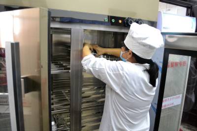 湖北省十堰市郧阳区柳陂镇中心小学食堂有来自偏远山区的200多名包括贫困户孩子在内的山村孩子就餐,为确保学生健康和饮食卫生安全,该校投入资金11000余元,购置了高温消毒柜及230套不锈钢餐盘、汤匙,并由学校统一“高温”消毒,免费供学生使用,一改往日部分学生自带碗筷和低温消毒的历史,真正把住了饮食卫生安全的“入口”关。