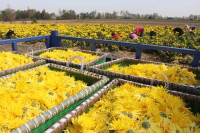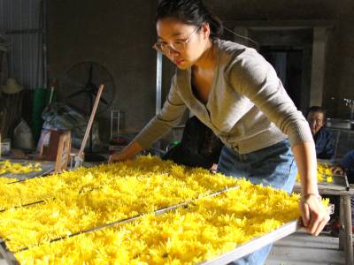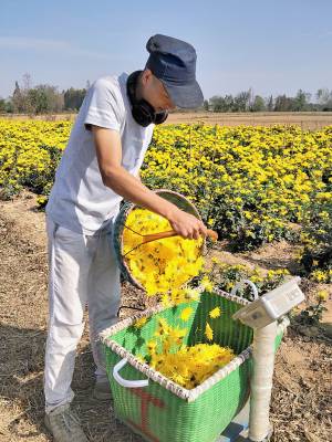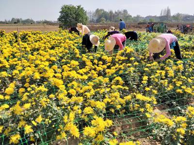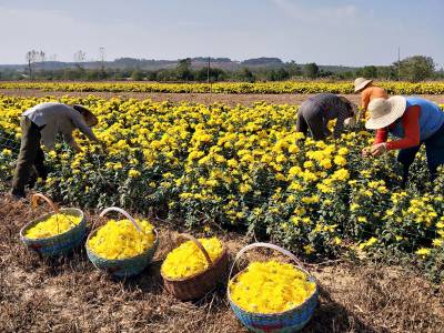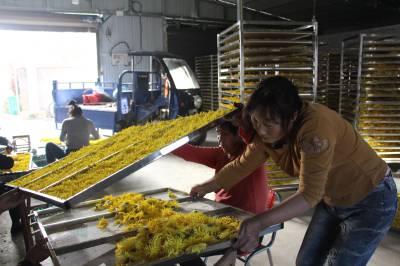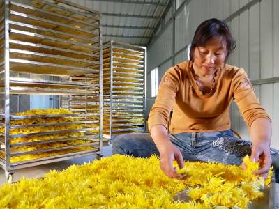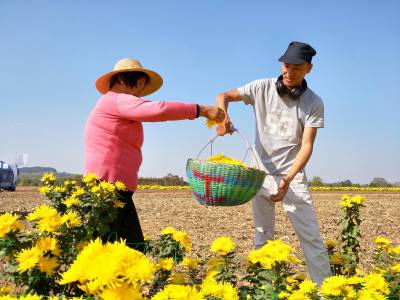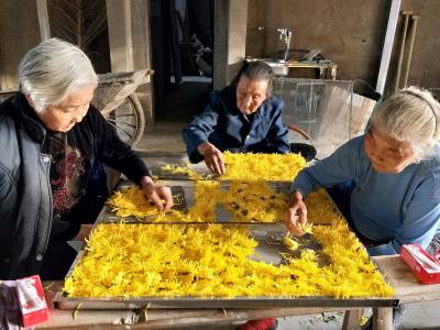 县乡村为刘云香进行有针对性帮扶,为其帮助解决资金、种苗等问题,进行经济作物种植。帮扶解决菊花烘干的烘房、机械设备等。刘云香承包转租耕地50多亩,其中菊花7亩、金银花10亩、艾草10亩、芍药3亩、佛手6亩,还有芝麻等作物。眼下,刘云香种植的金丝黄菊正是盛花期,近日组织劳力进行采摘、整理烘干等待出售。今年虽然遇高温久旱,但由于采取了相关措施,预计今年有个好收成。