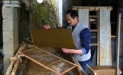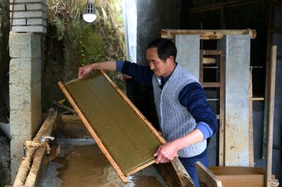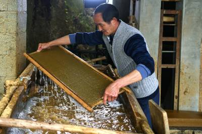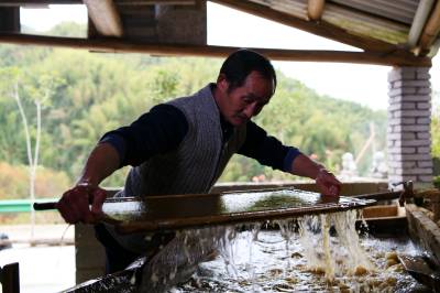 牮纸制造工艺复杂,全程需经取竹、撕片泡浆、发酵蒸煮、水碓舂麻、荡料入帘、覆帘压纸、晾晒焙干、打捆入库等72道工序,工期一年有余,一直采用原始的设施、设备和传统的手工制作方法,因其产品原料优势,手工制作精细,以致质量上乘,产品畅销于本县和周边县市地区。