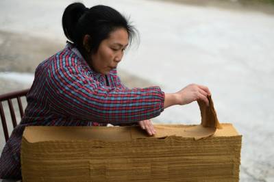 湖北省咸宁市通城县麦市镇黄龙山牮楼嘴沿用汉代作坊始产火纸至今,村民走出一条脱贫富路。由于黄龙牮纸制作工艺复杂,工期较长,手工操作的劳动强度大,制纸技术要求高,多为中老年人造纸,导致造纸传承人减少,以致纸业传承濒危,当地加大这一传统手工技艺保护和传承,2016年,入选湖北省非物质文化遗产名录。。