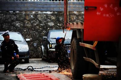 湖北沙洋:塔上“穿针引线” 消除线路隐患