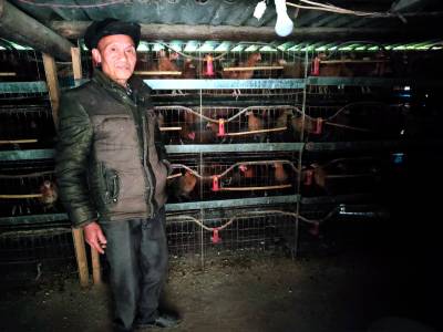 11月20日,竹山县深河乡茅坝村二组贫困户杨先军正在给鸡投饲料。据了解,他从2011年起,利用自家房前屋后的山场资源,用竹竿和塑料网把房前的树林圈起来,购买一台小型孵化器,收购本地土鸡蛋,通过边学边总结经验孵化多批鸡苗,投喂一些包谷、米糠、青菜叶子,让这些仔鸡在林下散养自由采食长成大鸡后出售变现增收脱贫。今年他已出售土鸡500多只,平均每只鸡重4—5斤,卖30元一斤,还有200多只鸡还在饲养代售,预计全年增收超过5万元。(视界网程平 卢波摄影)