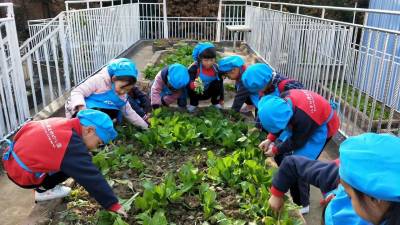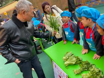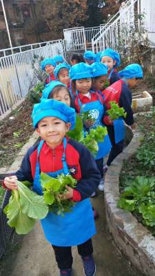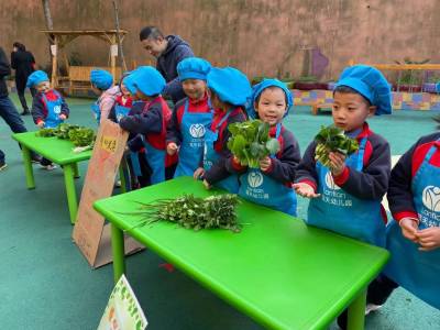 “卖菜啦...卖菜啦..三块、两块,婆婆,要不一块钱给您吧……”孩子们稚嫩、清脆的叫卖声引来了众多家长和路人驻足。活动开始前,老师按四个人一组把小朋友们分成了若干小组,爸爸妈妈们负责协助设计广告摊位牌,小朋友们负责采摘和义卖。小朋友们在老师的带领指导下,三点就来到小菜园开始为蔬菜义卖活动做起了准备。“小菜园的蔬菜长大啦!”在喜悦激动的欢呼声中,大家分好工,有的摘青菜,有的摘茼蒿,有的拔蒜苗,还有的挖香菜……菜园里一片快乐繁忙,处处流露着“绿色种植园,丰收采摘乐”的景象。