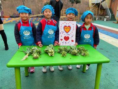 “叔叔!阿姨!这是我们自己种的绿色蔬菜,新鲜又便宜,快来买呀!”11月21日下午四点二十分,在十堰市武当山蓝天虹源幼儿园里,蔬菜义卖活动热热闹闹地拉开了帷幕。