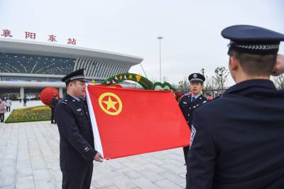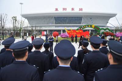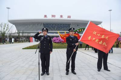 汉十高铁以及郑万高铁襄阳以北段开通在即,2019年11月26日上午,武汉铁路公安局襄阳公安处在襄阳东高铁站举行高铁安保动员暨青年突击队授旗仪式,进一步激发青年民警投身汉十、郑万高铁安保工作的积极性,充分发挥青年民警的生力军、突击队作用,号召广大民警用火热的青春和百倍的干劲全力打好高铁安保攻坚战。当天,襄阳东高铁站举行市民开放日活动,该处组织民警加强治安防范,确保广大市民在高铁站参观期间的绝对安全。