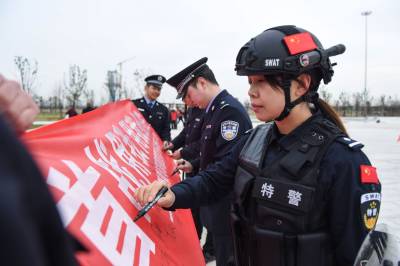 图9:全体青年民警在“首战用我 用我必胜”横幅上签名;