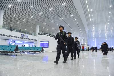图10-14:该处组织民警加强治安防范,确保广大市民在高铁站参观期间的绝对安全。