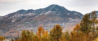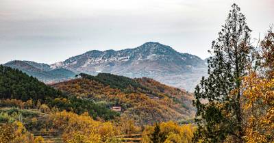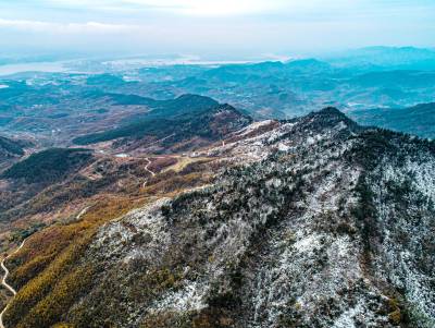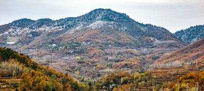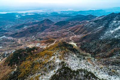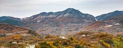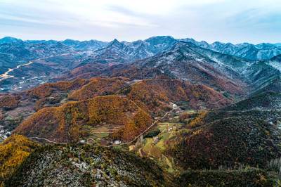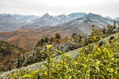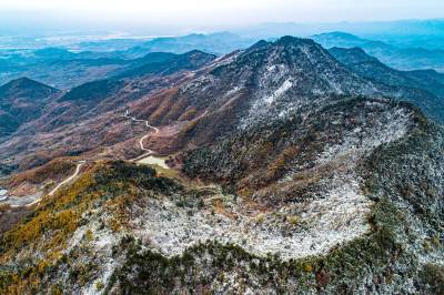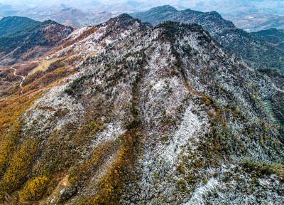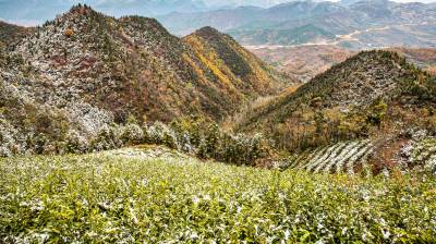 2019年11月26日,拍摄于湖北省十堰市郧阳区杨溪铺镇伏山村雪后呈现出的独特美景。25日,郧阳区普降瑞雪。一场飞雪过后,26日,雪后初晴的郧阳,多地展现漫山秋色犹未尽、白雪妆扮多妖娆的秀美画卷。(陈新才、陈治刚)