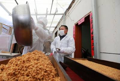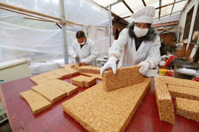 “芝麻糖,米花糖,吃一口,满嘴香……”11月25日,在竹山县宝丰镇花栗树村二组建档立卡贫困户刘本军家的“扶贫作坊”里,刘本军、曾照英夫妇正在手工制作芝麻糖、米花糖、包谷花糖等。今年67岁的刘本军介绍,自家有手工制作芝麻糖等美食的传统手艺,扶贫攻坚战打响后,镇上组织贫困户进行技能培训,要求达到“四个统一”:统一合作经营规则、统一选用优质食材、统一工艺制作流程,请市场监督管理等部门检查指导后,统一贴上食品安全标识。每年纯收入有3万元以上,成为全村脱贫致富典型。