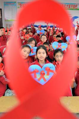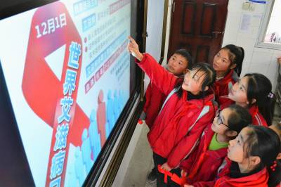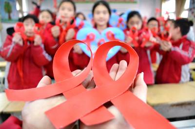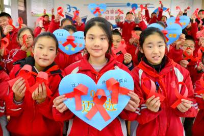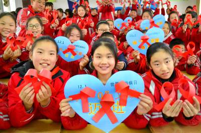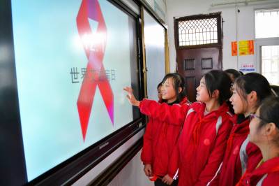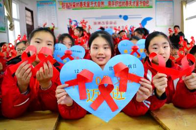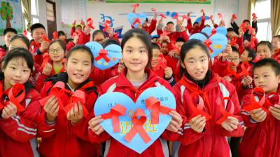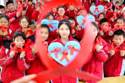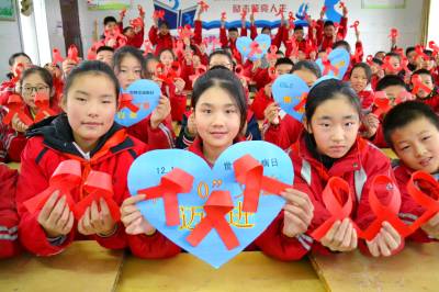 当日,湖北省十堰市郧阳区柳陂镇中心小学开展“情系‘红丝带’”活动,学生通过剪制和展示预防艾滋病徽标“红丝带”、宣传“防艾”知识,表达他们对艾滋病患者的关爱,以迎接12月1日第32个“世界艾滋病日”的到来。