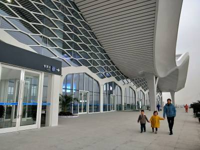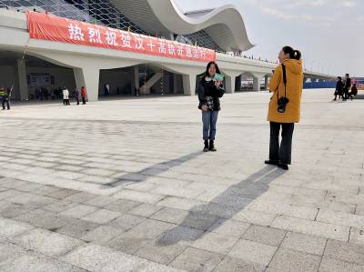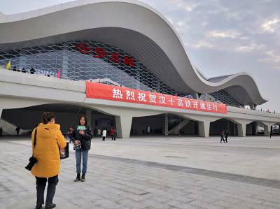 2019年11月29日,汉十高铁云梦东站格外热闹,人们像过节日一样来到这里,争着乘坐汉十高铁首日开通营运的列车,一睹湖北省最美高铁的风采。车站外、站前广场,人们不约而同来到这里,观看首日运行的高铁列车,欣赏美丽的车站站房和候车大厅,放眼观赏漂亮的站前广场。