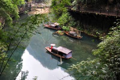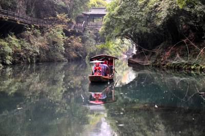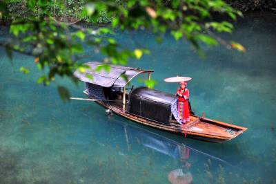 龙进溪两岸群山叠翠,绿水环绕,溪流蜿蜒曲折,峡谷纵横交错,秀美的自然风光令人如游画廊,心旷神怡。溪河里荡桨的乌篷船、垂纶的渔夫、张挂的渔网、红衣油纸伞的幺妹,再配上此起彼伏的山歌、竹笛吹奏、婚嫁习俗表演等元素,更增添了丰富灵动的人文色彩和文化内涵。